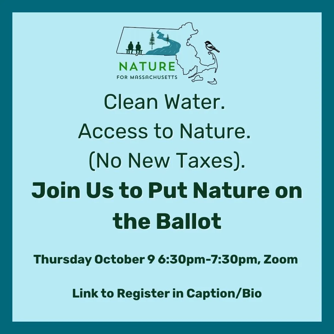 Join us at an upcoming Nature for Massachusetts Campaign Webinar on Thursday, October 9 from 6:30pm-7:30pm. We need your help spreading the word!