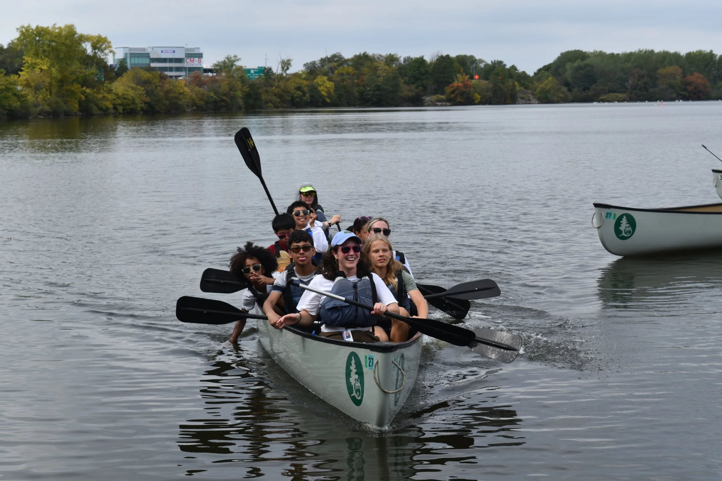 The centerpiece of the Canoemobile program is Wilderness Inquiry’s “floating classroom”—a fleet of six 10-person, 24-foot Voyageur canoes that bring students onto the water to learn about science, history, geography, and culture. This outdoor education experience allows students to connect directly with the waterways in their backyard.