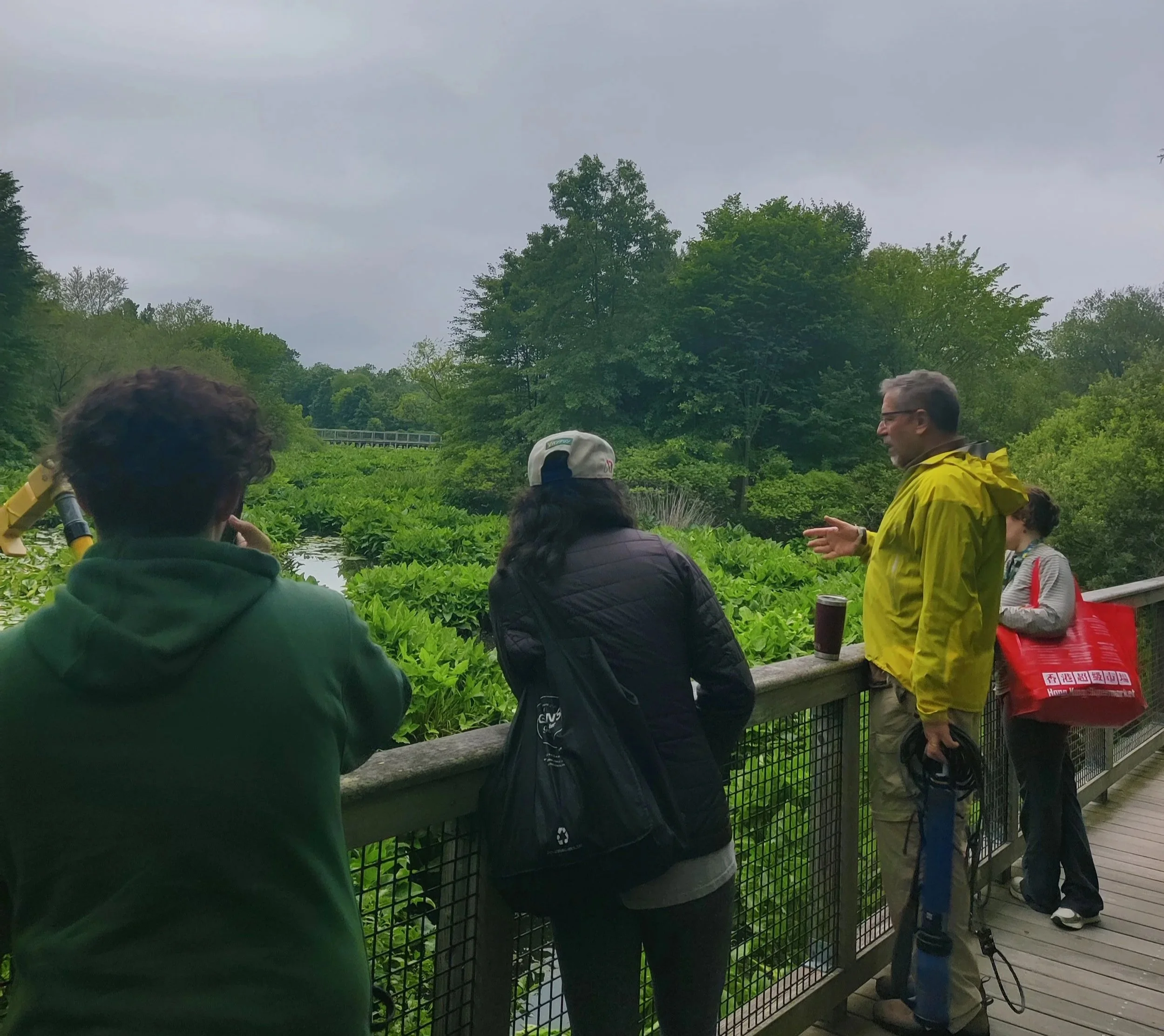 Andy, MyRWA Water Quality Program Manager, with the summer fellows at the Alewife Wetland Reservation.